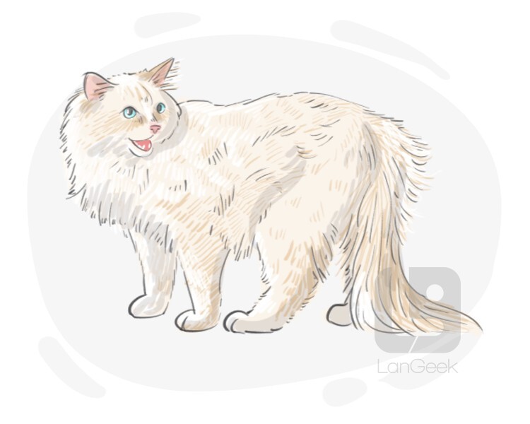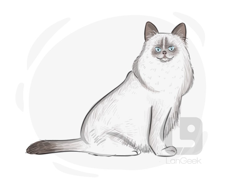 a domestic cat breed, also known as the sacred cat of Burma, which is long-haired and blue-eyed, with a colored face