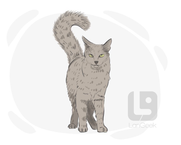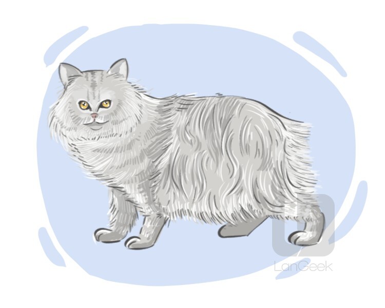 a domestic breed of cat originated in Isle of Man that is a semi-long-haired variety of a Manx cat