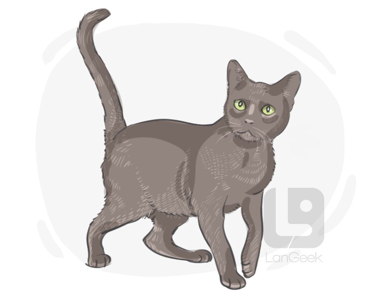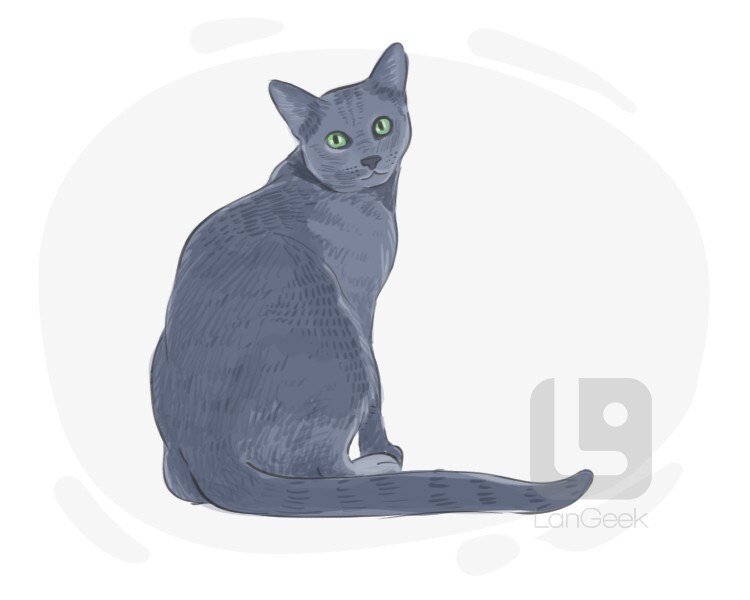 a domestic cat breed originally from Russia with silvery blue coat and green eyes