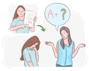 छात्र ने खराब ग्रेड को हंसकर टाल दिया, यह कहते हुए कि यह सिर्फ एक परीक्षा थी और इससे कोई फर्क नहीं पड़ता।