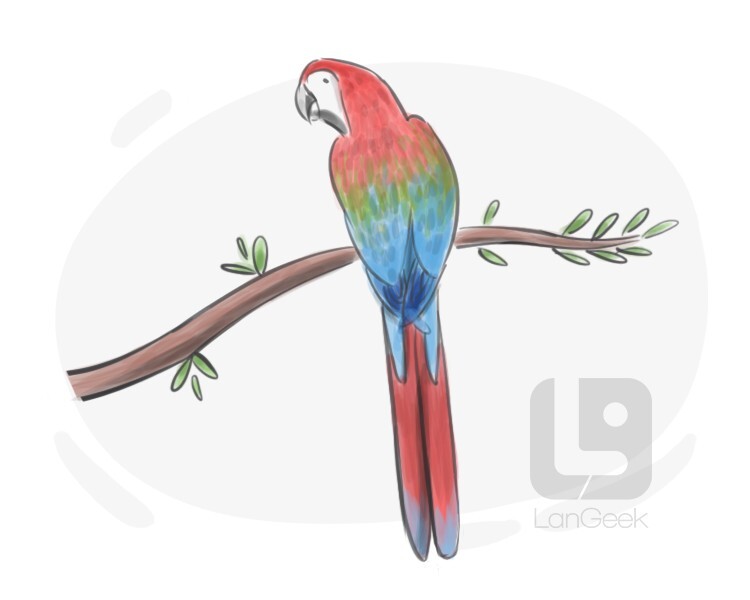 a large long-tailed parrot with colorful feathers and a long tail originally from Central and South America