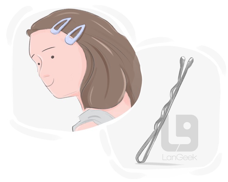 a thin flat hairpin made of metal or plastic folded in the middle, usually used by women