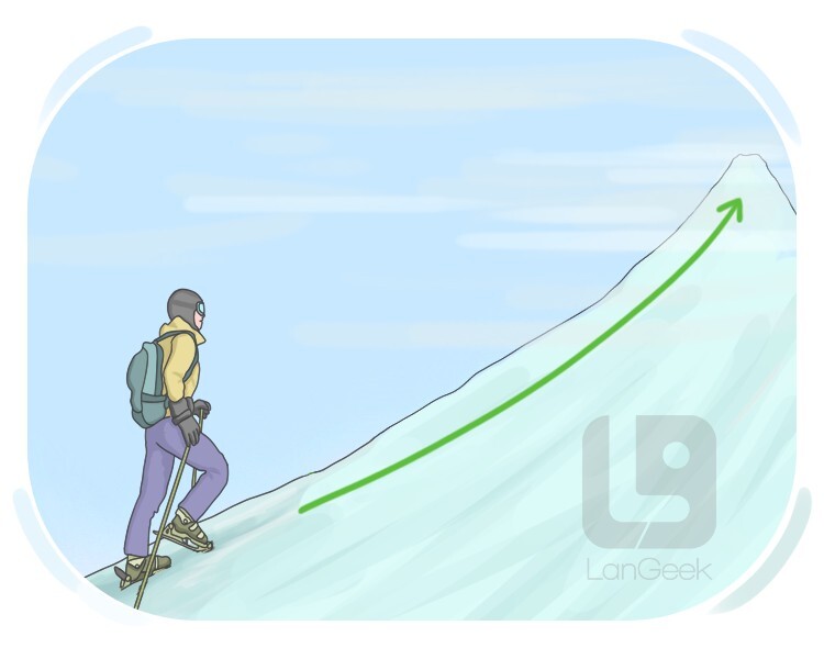 from a lower point to a higher point along a surface or structure