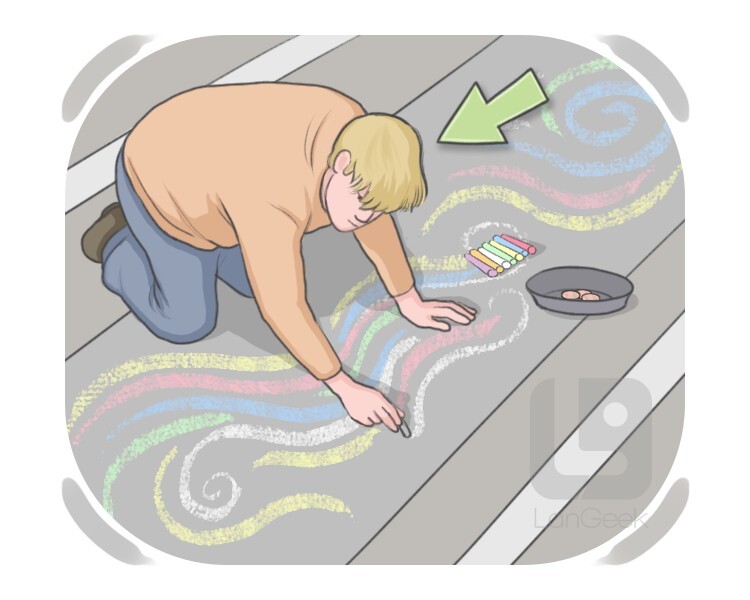 an artist who draws with chalk on the sidewalk, hoping to get money from the pedestrians