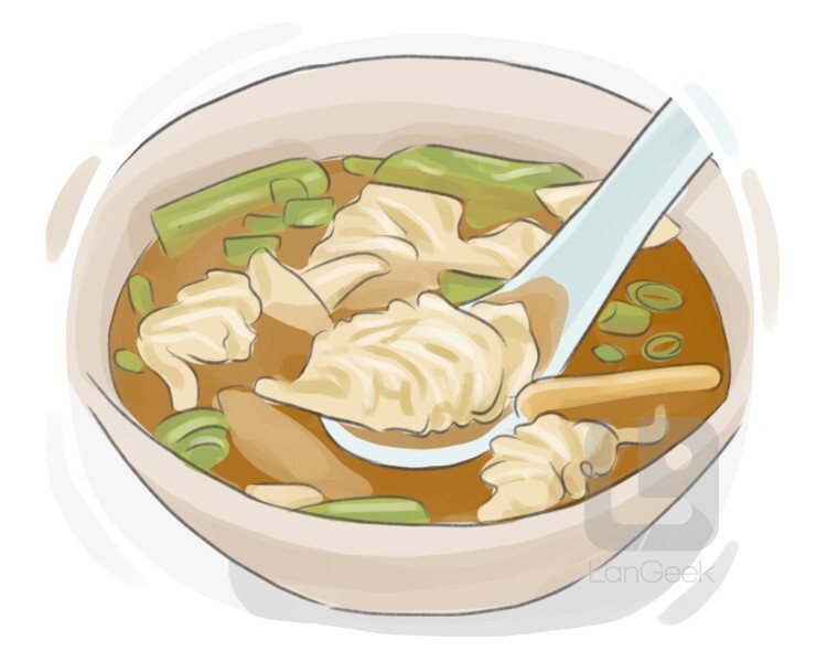 type of Chinese dumpling that is typically filled with seasoned ground meat or vegetables and served boiled or fried in soup or as an appetizer