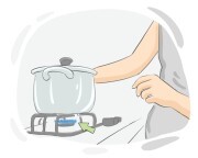 Dia menyalakan pembakar untuk memanaskan air untuk teh.