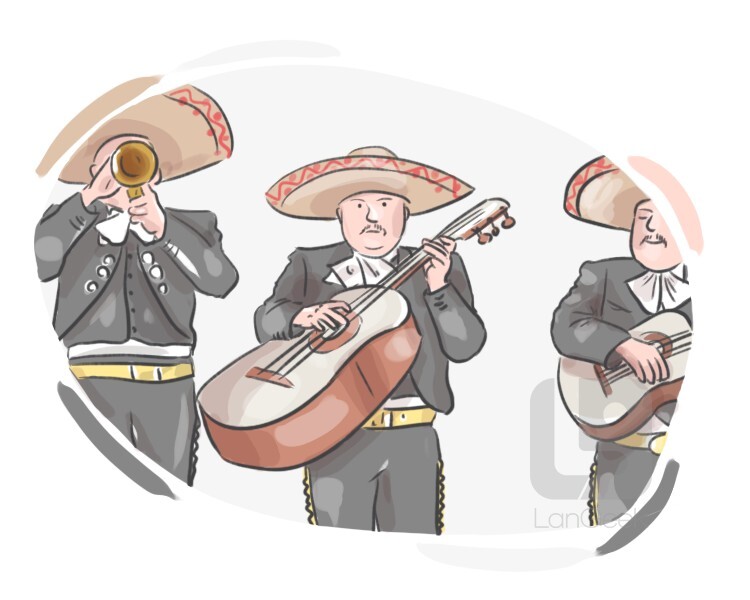 a group of musicians that perform Mexican folk music in a small group usually consisting of trumpeters, guitarists and violinists dressed in traditional costumes