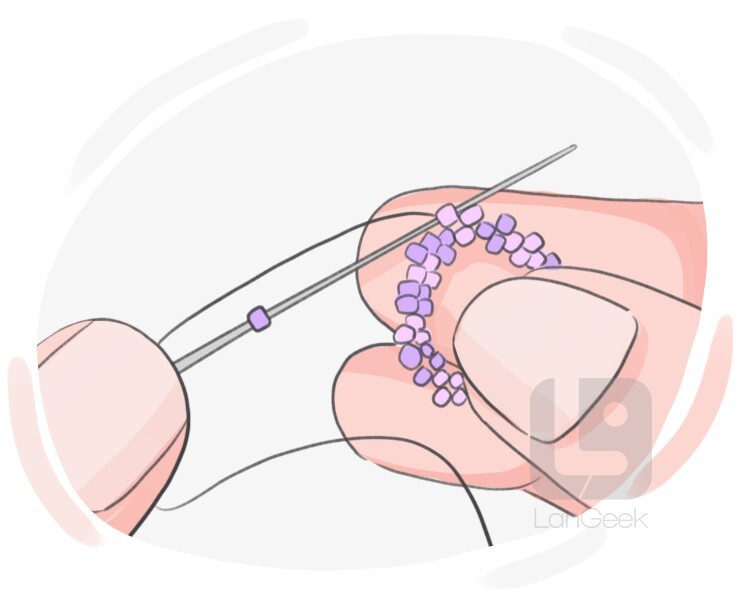 to create fabric or a fabric item by interlocking loops of yarn or thread using a hooked needle