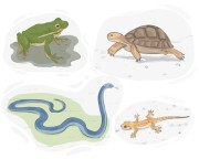 Di kebun binatang, ada pameran reptil yang menarik dengan ular dan kadal.