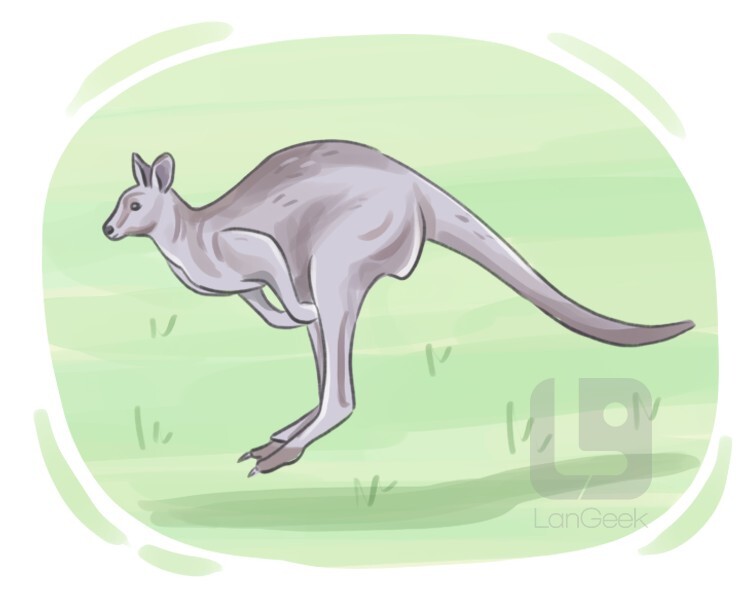 a large Australian animal with a long tail and two strong legs that moves by leaping, female of which can carry its babies in its stomach pocket which is called a pouch