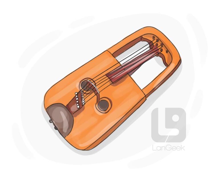 a musical instrument, usually with six strings, that we play by pulling the strings with our fingers or with a plectrum