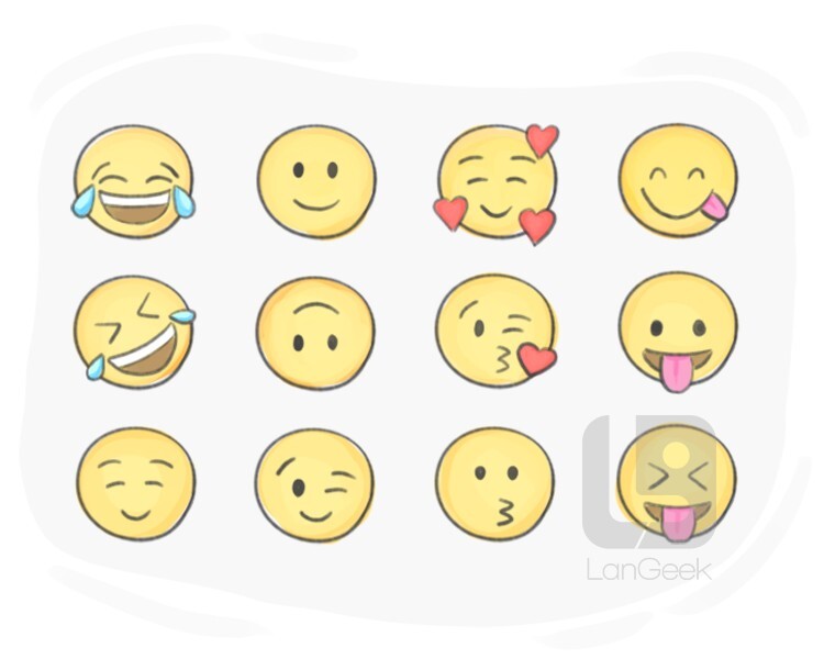 a small digital icon or image used on social media or in text messages to show the tone of a message or its sender's facial expression, originated in Japan