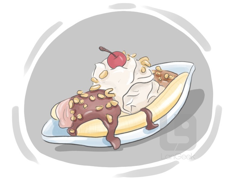 a dessert that is consisted of ice cream with sliced pieces of banana and is topped with fruits, nuts, etc.