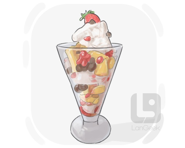 a dessert consisting of ice cream, fruit and cream in a tall glass