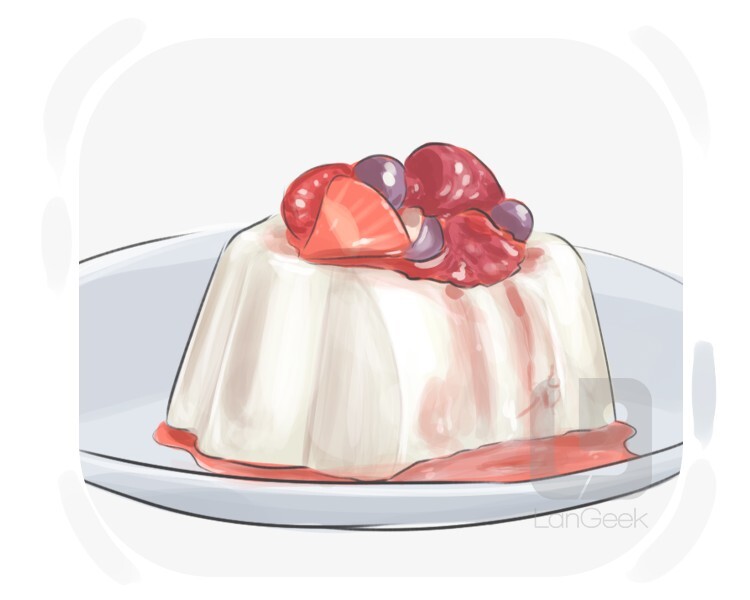 an Italian dessert made by simmering cream, sugar, and vanilla together, and then thickening the mixture with gelatin and chilling it until set
