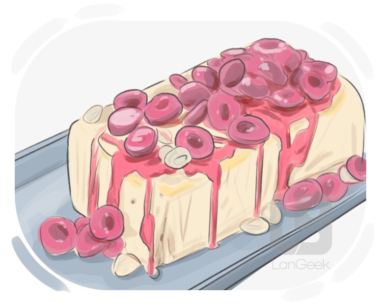 an Italian frozen dessert that is similar to ice cream, made with a mixture of whipped cream, sugar, and sometimes eggs, that is then frozen in a mold or pan and served chilled