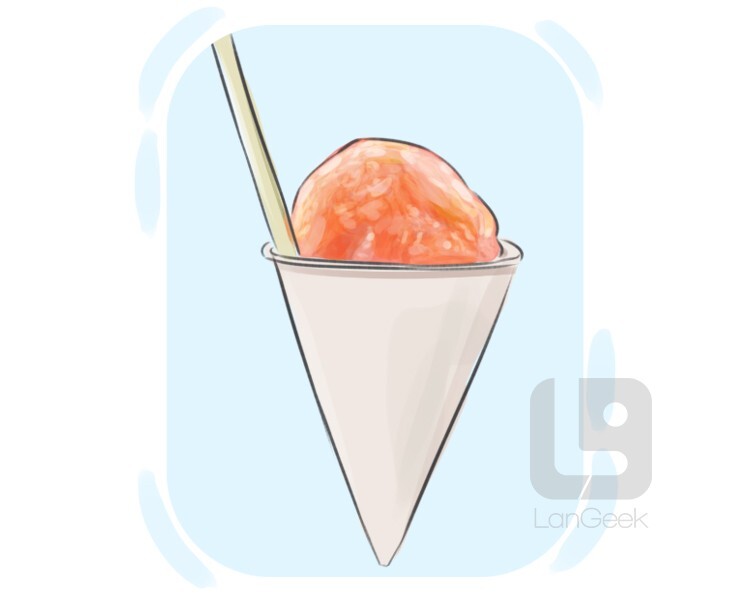 a frozen treat made with crushed or shaved ice that is flavored with sweet syrups or fruit juices, often served in a paper cone or cup