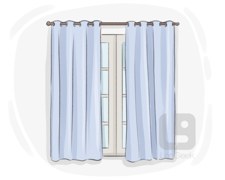 a hanging piece of cloth or other materials that covers a window, opening, etc.