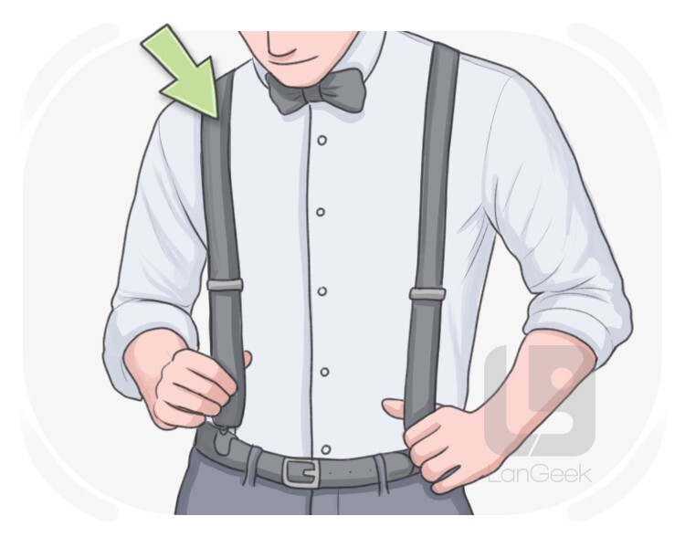 (used plural) a long narrow band of cloth that is passed over the shoulders used to keep the pants from falling
