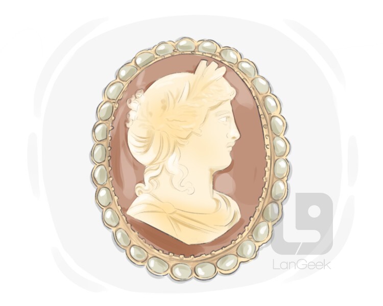 a piece of typically oval-shaped jewelry featuring a raised relief image, often a woman's profile, carved in a material such as shell or stone