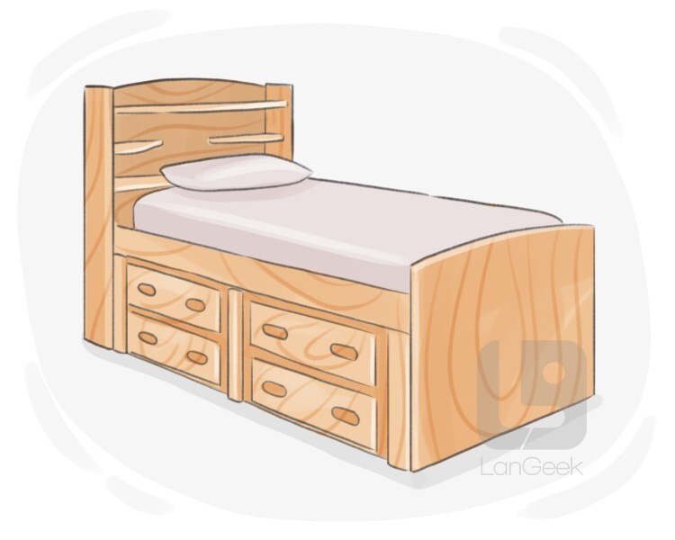 a type of platform bed that typically features built-in storage drawers underneath the mattress and a headboard with shelves or cabinets for storing clothing, linens, or other items