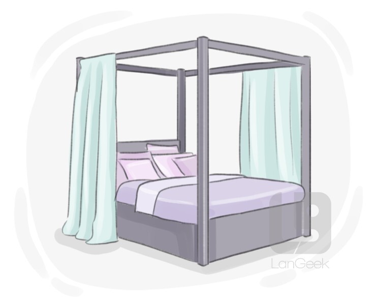 a type of bed that has vertical columns or posts at each corner, often with a canopy or drapes hung from the top