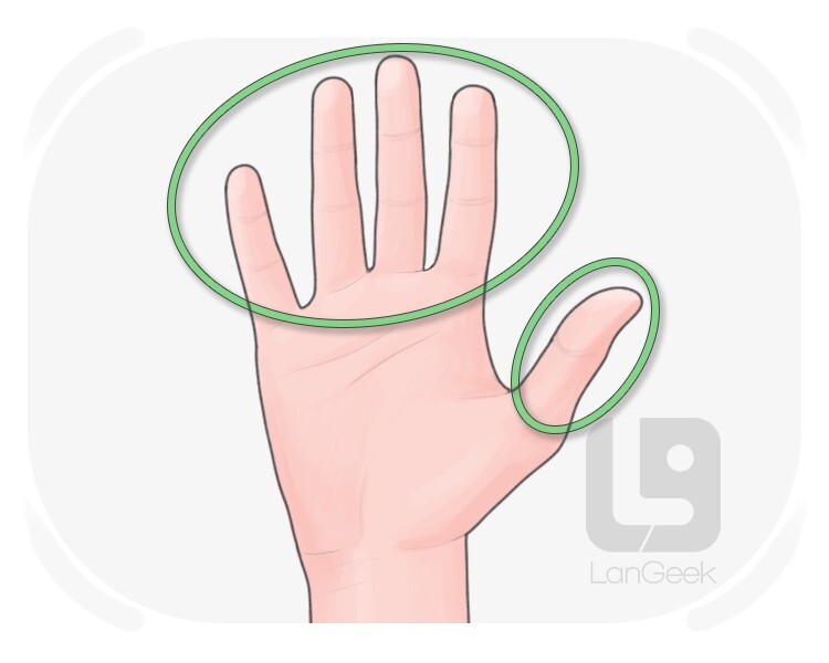 each of the long thin parts that are connected to our hands, sometimes the thumb is not included
