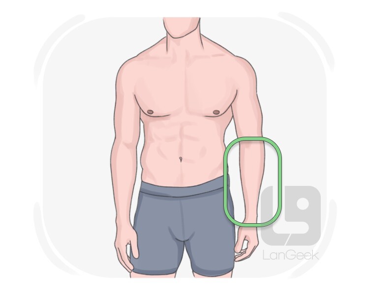 the lower part of the arm, between the elbow and the wrist