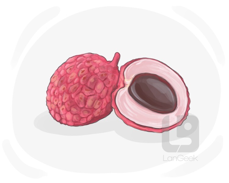a round red tropical fruit native to china, with a sweet white flesh, rough skin and a large seed