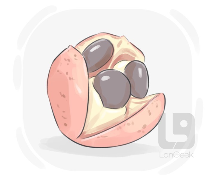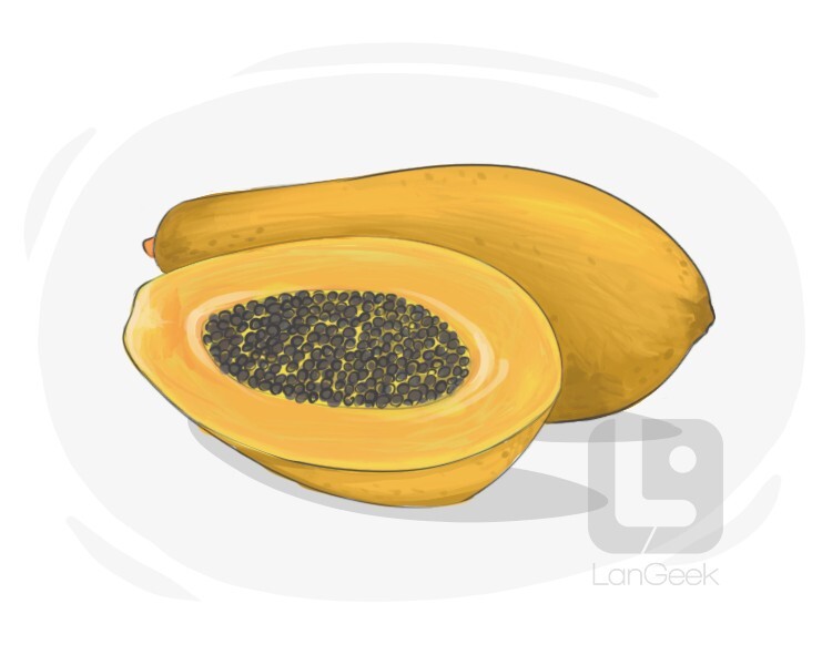 an oval tropical fruit with an orange-yellow flesh containing black seeds