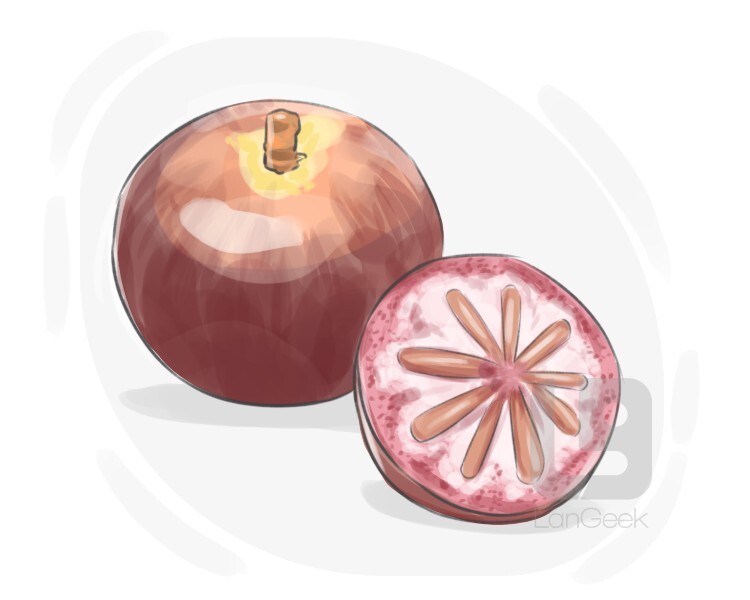 a tropical fruit with a sweet and juicy flesh, enclosed by a purple or green skin