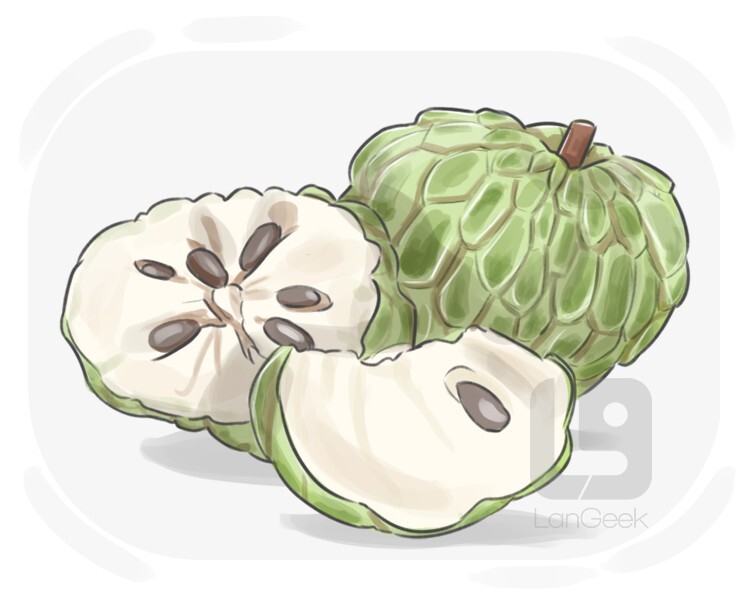 a tropical fruit with a spiky green exterior, creamy flesh, and a sweet, custard-like taste
