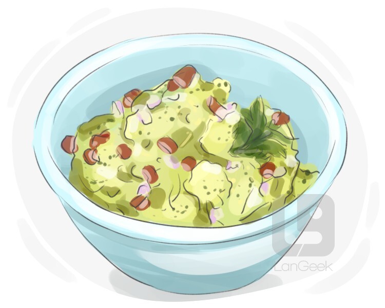 a dish consisting of a mixture of mashed avocado, onions, chilies, tomatoes, etc., originated in Mexico
