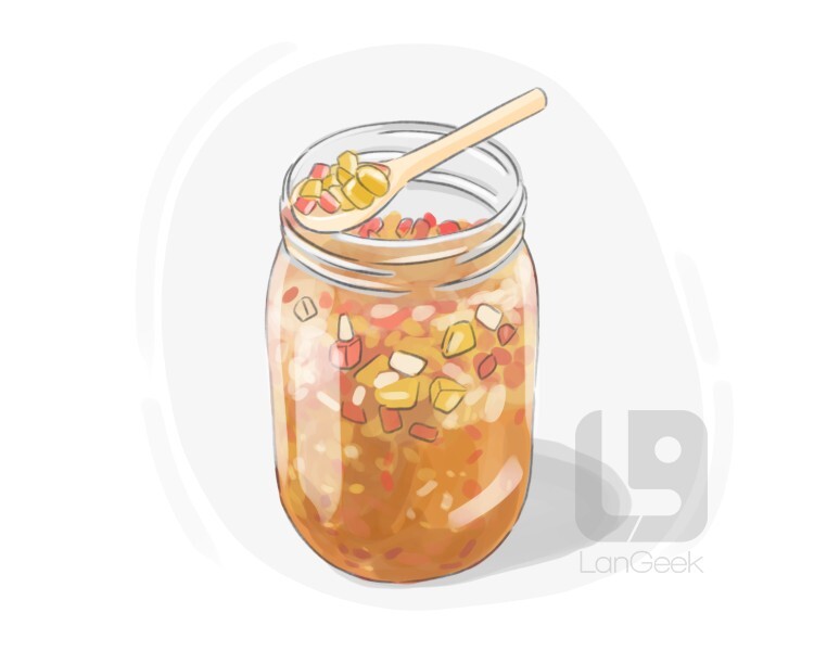 a combination of either pickles, vegetables, spices, and herbs, that is used as condiment