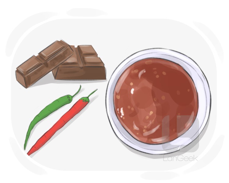 a rich and complex Mexican sauce made with chili peppers, chocolate, nuts, and various spices