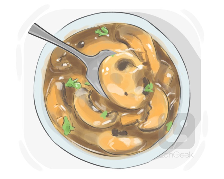 a flavorful liquid made by simmering meat, fish, or vegetables in water