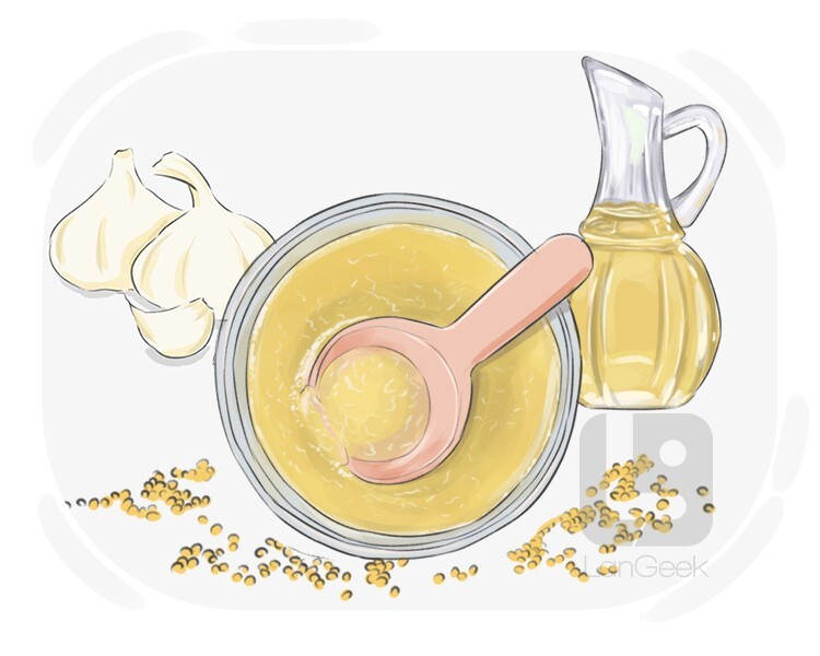 a type of sauce made with garlic, oil, lemon juice, and salt, used to add flavor to meat, fish, or vegetables