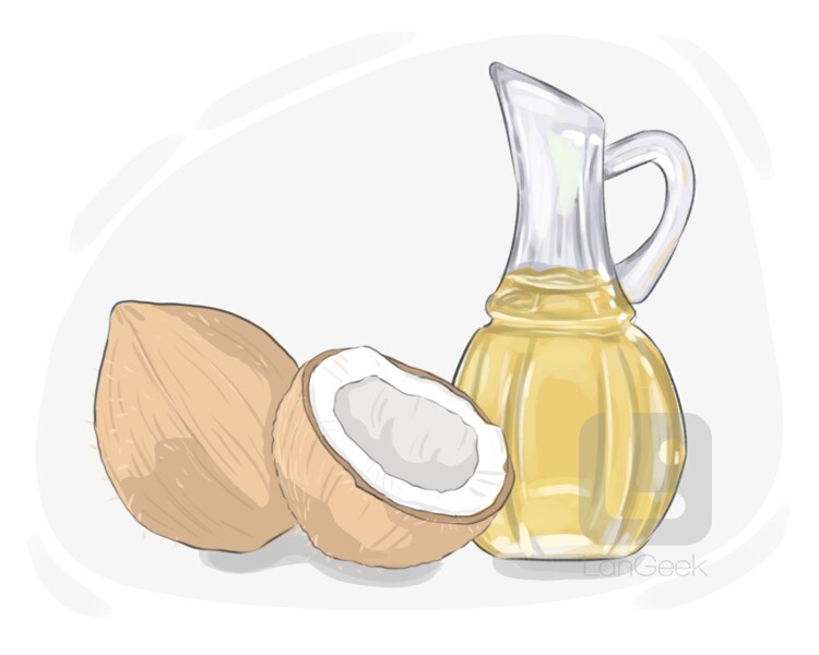 an oil that is obtained from coconuts and is often used in food or beauty products