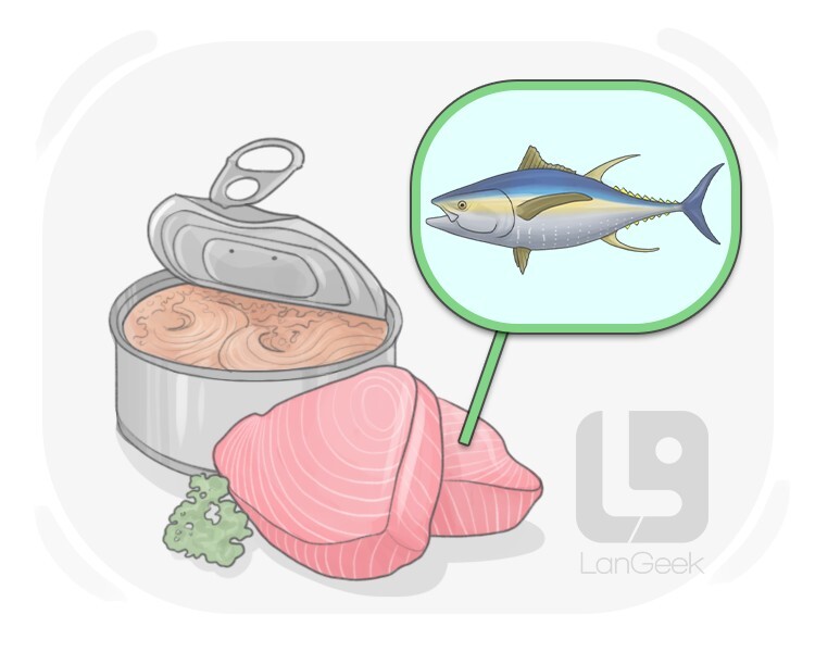 the meat of a large fish named tuna that lives in warm waters