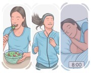 彼女の健康的なライフスタイルには、定期的な運動とバランスの取れた食事が含まれます。