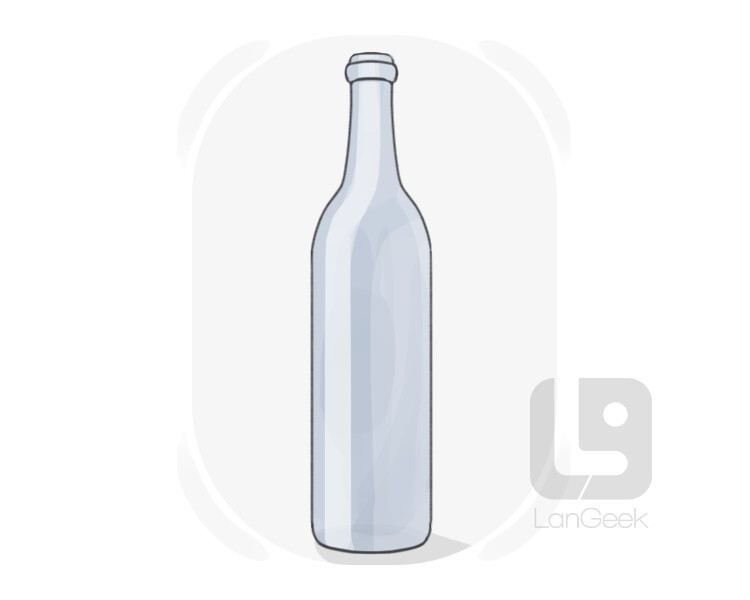 a glass or plastic container that has a narrow neck and is used for storing drinks or other liquids