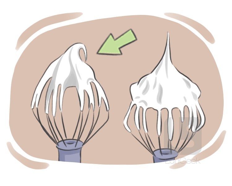a stage in whisking or beating egg whites or cream where the mixture holds its shape but the peaks curl over gently when the whisk or beaters are lifted