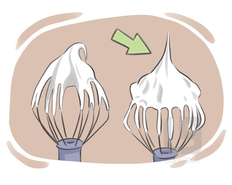 to beat or mix rapidly, typically with a utensil such as a whisk