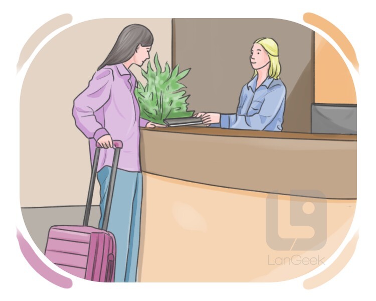 a specific area in a building, like a hotel or office, where one checks in, gets help, or asks questions