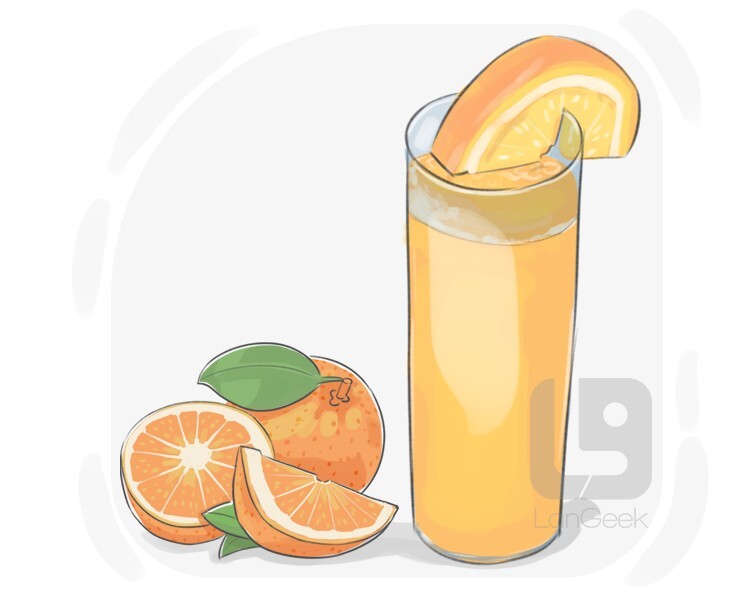 a liquid beverage made from the extraction of juice from oranges, often consumed as a refreshing drink