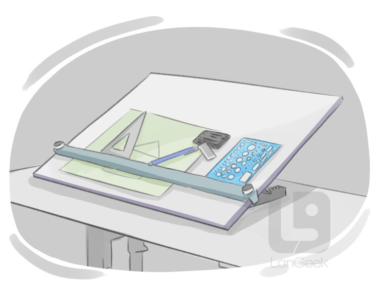 a straightedge tool with a perpendicular crosspiece used in conjunction with a drafting board for drawing straight lines and right angles