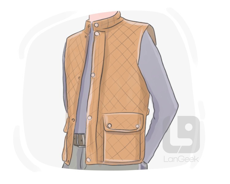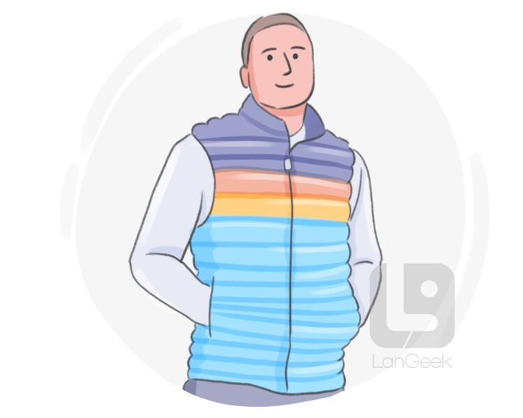 a sleeveless insulated outer garment that is filled with down or a synthetic material to provide warmth