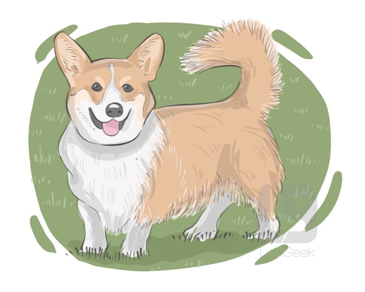 a breed of dog with short legs, pointed ears, a powerful muzzle, and a long coat