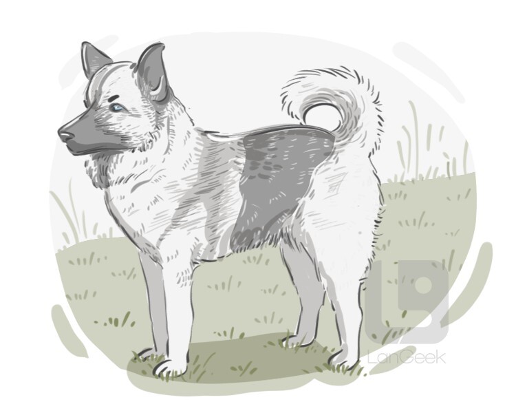 a mid-sized Norwegian hunting dog with a heavy coat of gray hair that is known for its courage in facing larger beasts
