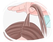美容師は髪を切り始める前に、慎重に客の髪を真ん中で分けました。